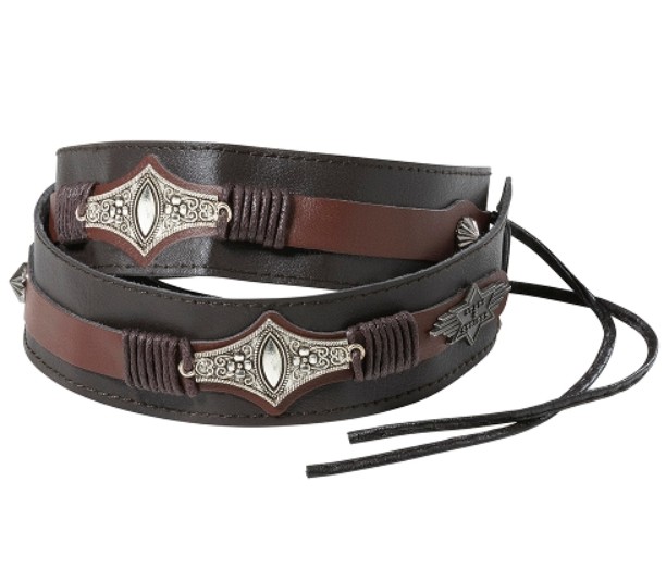 Sötétbarna színű bőr kalapdísz conchos és szegecsekkel.