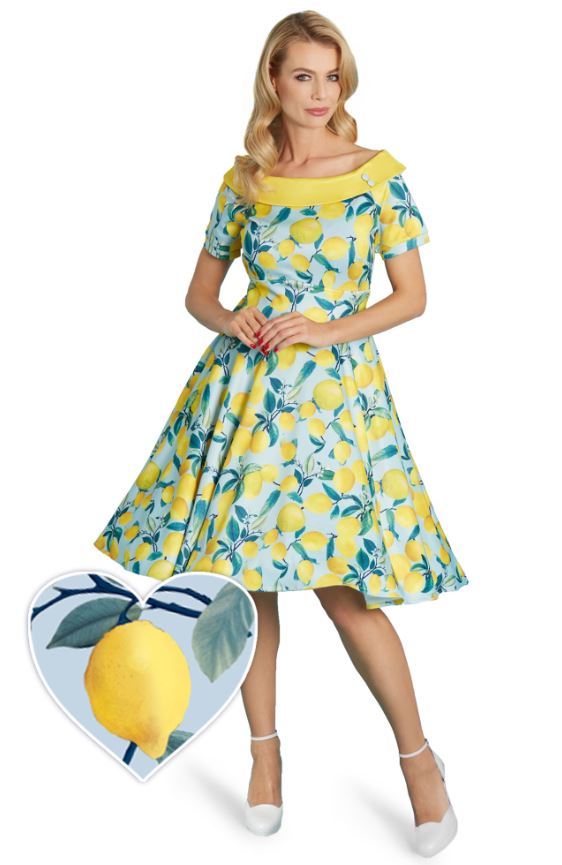 KezdőlapROCKABILLY, VINTAGENői ruházat Darlene retro ruha, citrom