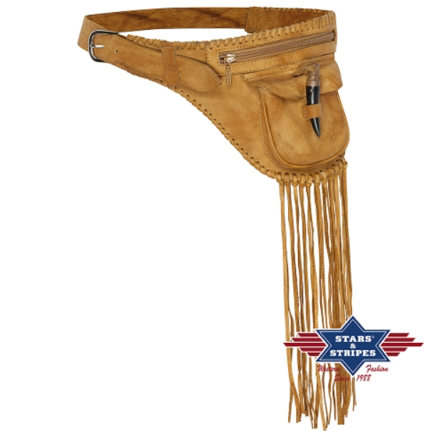 Sakima brown csípőtáska, rojtokkal és külső zsebbel. Keresztben illetve vállon is lehet hordani. Anyaga: 100% bőr.