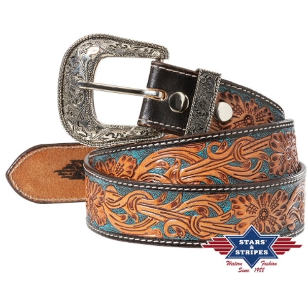 WG-304 Kiváló minőségű, erős bőrből készült bőröv, különleges díszítéssel, barna színben.